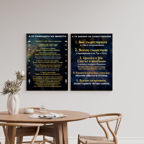 Канава/Платно с дървена рамка – дизайн на „8-те Принципа на Живота“ От Хермес Трисмегист / Тот.